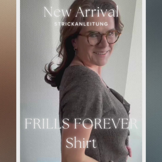 Ich habe ein Faible für Rüschen! Sie verwandeln ein schlichtes Basic in etwas Spielerisches und Feminines. FRILLS FOREVER Shirt ist ein luftiges Raglan-Shirt, das von oben nach unten gestrickt wird, mit kurzen angeschnittenen Ärmeln und einem Volant-Detail auf dem Vorderteil.